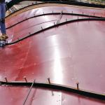 Anderson says the ribs were spaced 11 inches on center, each composed of two sections of plywood glued and screwed together. Each rib had flat spots cut into the bottom of the form for shores to rest against. The CNC router cut out each piece, numbered for a location and overlapped each other by 2 feet. No two rib forms were alike.