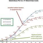 Because of our relatively large geographic size, Glastonbury has four firehouses located throughout the community. Three are served by natural gas. They range from 6,400 to 8,850 square feet with the equipment bays making up about 50% to 60% of that area. The facilities are 20 to 40 years old and the heating systems in all of them are original.